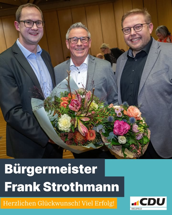 @frankstrothmann69 ist erster Bürgermeister. Herzlichen Glückwunsch! 🥳🤩 Wir freuen uns sehr über deine Wahl und damit haben wir eine starke Vertretung als Bürgermeister an der Seite von @christiana_bauer .💪 Dir lieber Frank ganz viel Erfolg in deinem neuen Amt und auf gute Zusammenarbeit für Bielefeld. #Bürgermeister #CDUBielefeld