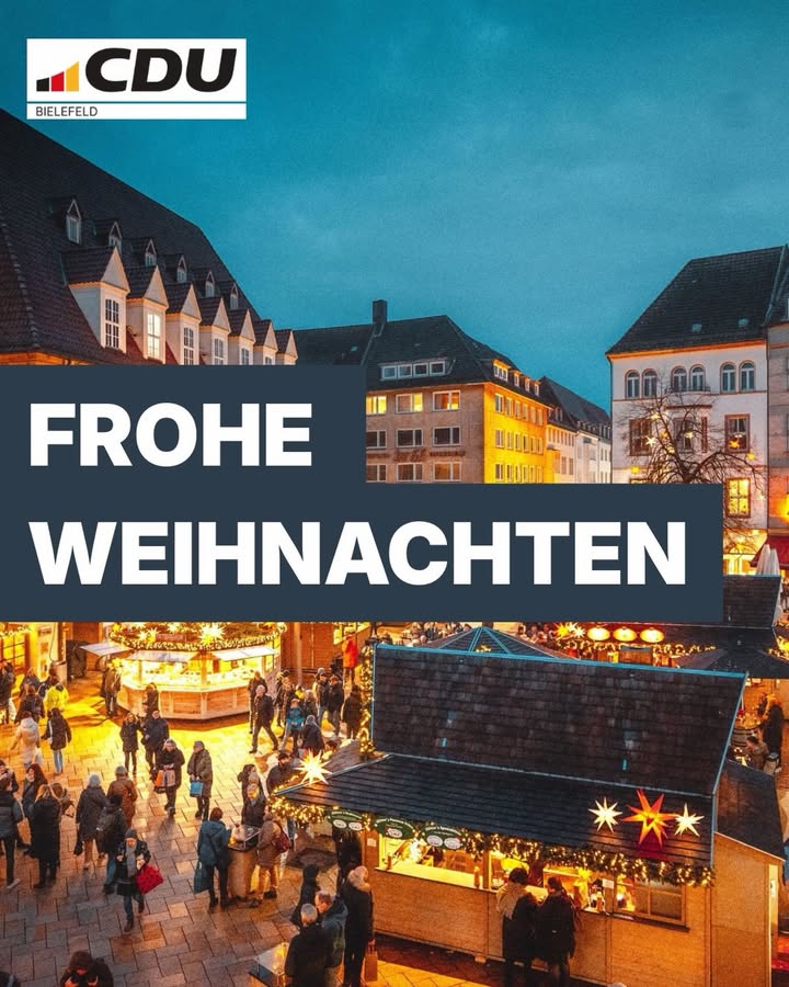 🎄✨ Heute ist Zeit für Besinnung, Dankbarkeit und Miteinander. Wir wünschen allen Bielefelderinnen und Bielefeldern einen friedlichen Heiligabend und gesegnete Weihnachtstage.?🏻 Gerade in bewegten Zeiten erinnern uns diese Tage daran, was zählt: Familie, Freundschaft, Zusammenhalt und Verantwortung füreinander.🚀 Genießt die ruhigen Momente, kommt gut zur Ruhe und startet hoffnungsvoll in die kommenden Tage.Frohe Weihnachten wünschtdie CDU Bielefeld 🎁✨