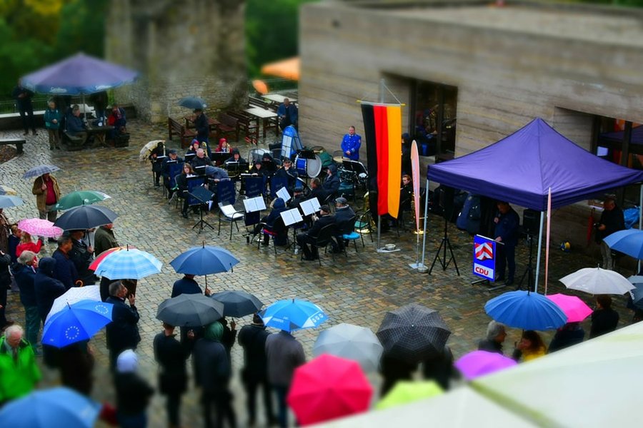 Zum 29. Mal fand die Festveranstaltung der Bielefelder CDU zum Tag der Deutschen Einheit statt. Trotz des sehr mäßigen Wetters hatten sich ca. 200 Bürgerinnen und Bürger auf der Sparrenburg versammelt. Als Gastredner war Ministerpräsident des Landes NRW und Bundesminister a.D., Dr. Jürgen Rüttgers, zu Gast.